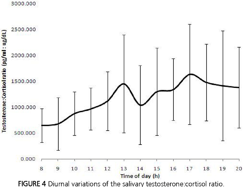 Testosterone production rises in the evening. Peaks very early in the morning and then decreases across the day [26], while instead cortisol is low during nighttime, rises abruptly during awakening and then decreases over the course of the day [27].